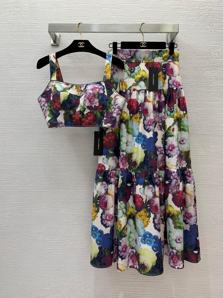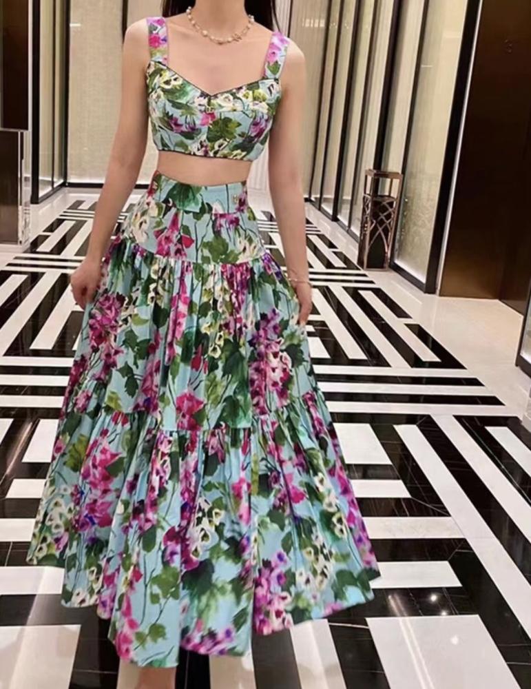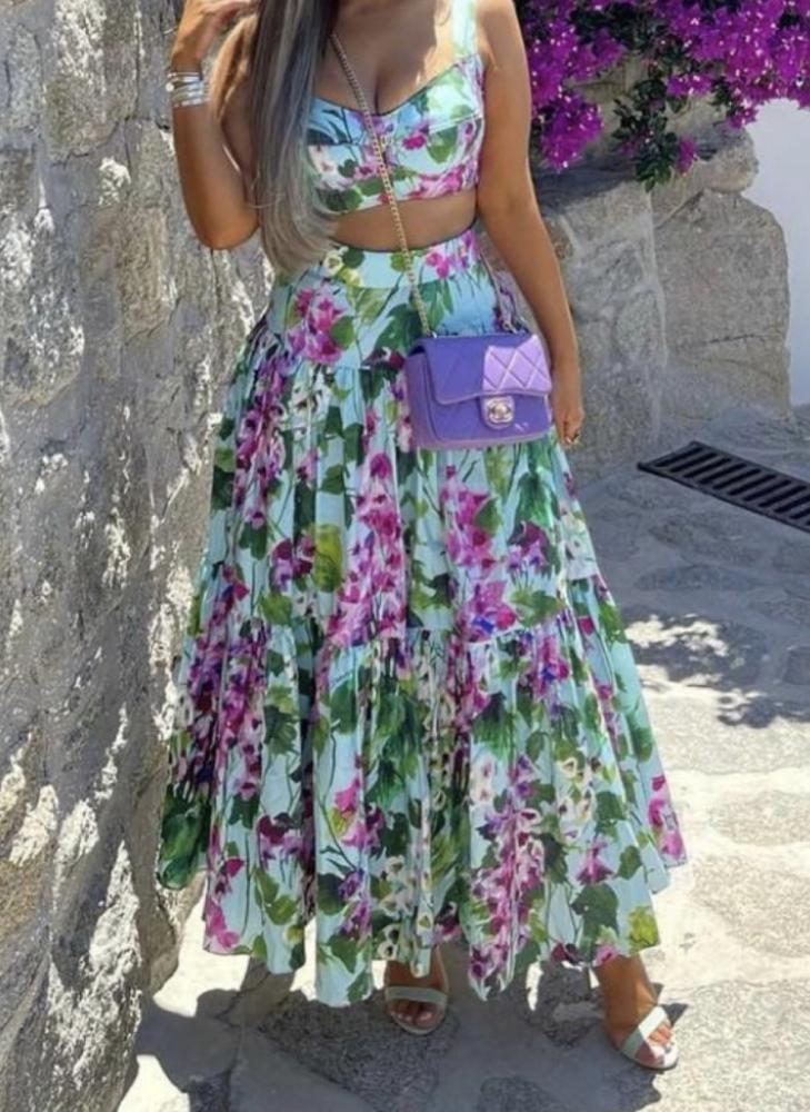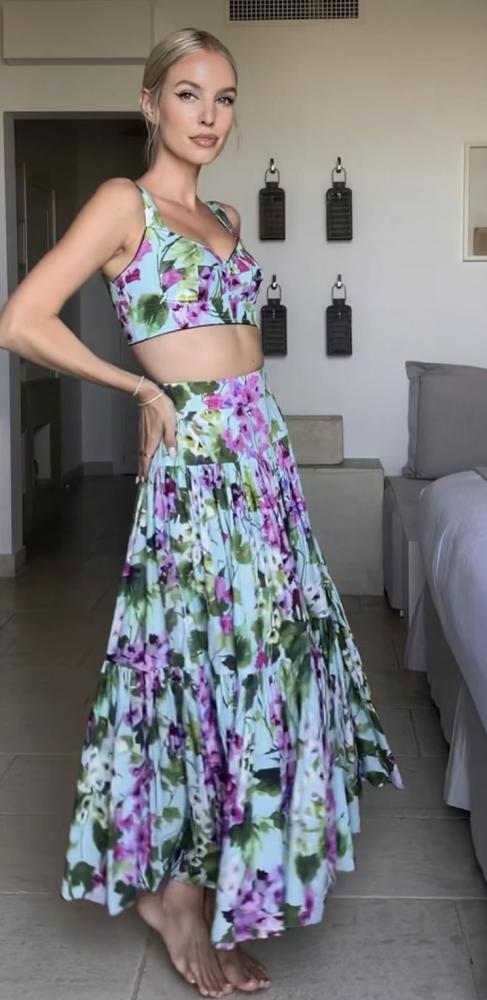 توب و تنورة طويلة قطن بوبلين بنقشة